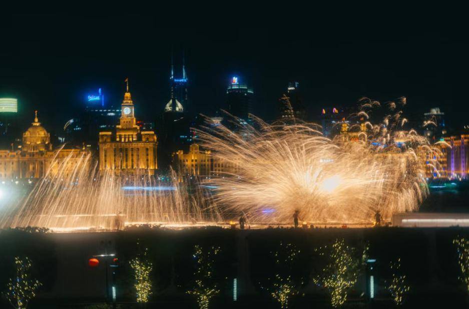 1月31日晚,不少网友在社交网站发布了在上海浦东美术馆、外滩观景平台等地拍到的打铁花表演视频。相关视频中,在陆家嘴滨江区域,高温铁水泼向夜空绽放出金花,在黄浦江两岸的霓虹中也十分耀眼。