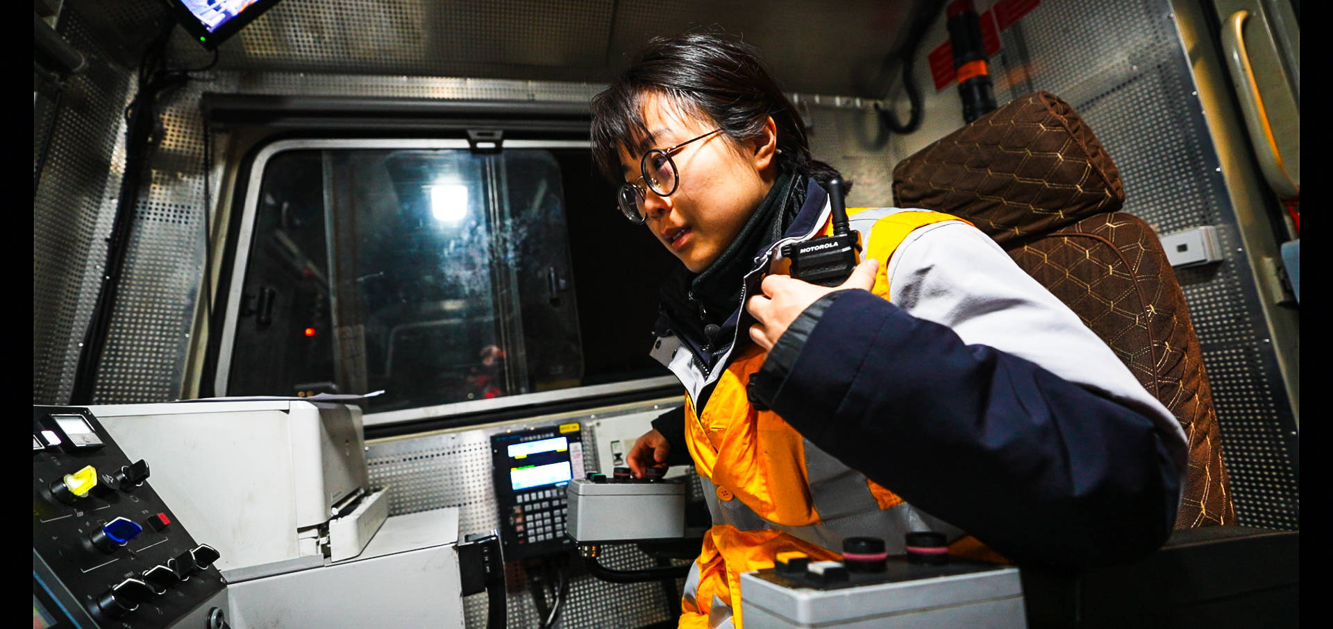 凌晨,陈雪梅核对线路数据情况。新华社发(董瑞鑫 摄)这位来自贵州大山里的姑娘,在父亲的熏陶下从小就爱上了机械。2021年毕业后,她毅然投身铁路事业,成为一名大机司机。陈雪梅说:“刚入行时确实听到过‘女性不适合开大机’的说法,但我从没怀疑过自己。现在最自豪的就是开着大机在线路上跑,看着维修后的线路变平整,那种成就感什么都比不了。”