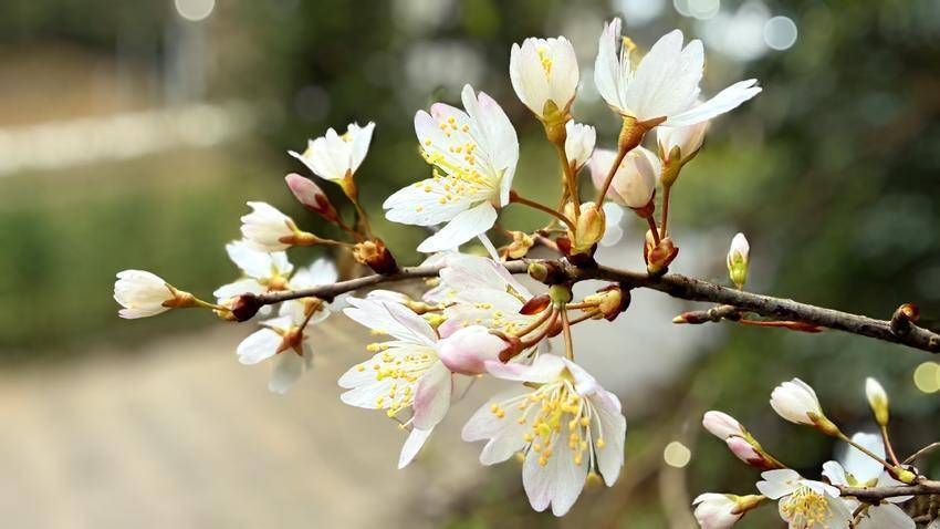 那粉色的花朵,似娇羞少女的脸颊,带着丝丝温柔;白色的花瓣,如飘落凡间的云朵,纯洁而轻盈。
