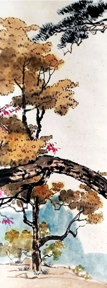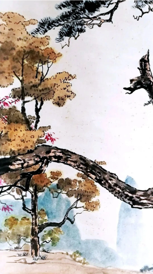 再说说这色彩,红黄绿交织,五彩斑斓,跟天目山的秋色一样醉人。这哪是画,分明是徐悲鸿和孙多慈恋爱时的甜蜜氛围嘛!还有那棵粗壮的松树,树杈斜出,把画面分割成两部分,这不就像他们俩的爱情,虽然曲折,但依然坚韧不拔。