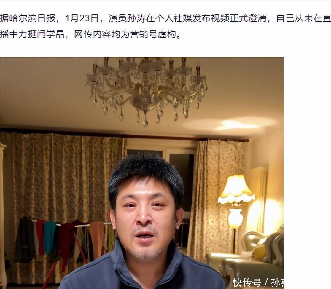 可为什么闫学晶还在直播中透露自己刚还完房贷。明明可以拥有衣食无忧的生活,却又为什么这么努力呢?无妄之灾第三个受害者就是曾经有过合作的演员孙涛,他们之间的合作本是舞台上的佳话。闫学晶在春晚上与孙涛搭档表演的小品深受观众喜爱两人也因此结下了不错的工作情谊,可没想到这份情谊却让孙涛遭到了网暴。而这一切都是因为网上流传出他力挺闫学晶的视频。直接让他陷入了舆论的漩涡,这也让他感到前所未有的痛苦。虽然离开春晚的舞台之后,大多数时间都在分享自己的日常生活。加之曾经留下的作品让大众对他还是很信任,可这些无端的指责还是像阴影一样笼罩着他。让他不得不出面澄清,生怕再次被卷入是非。1月23日孙涛在社交动态上发布了一条澄清视频,对于网上那些不实的谣言。他表示自己从艺40年就没有做过出格的事儿,如今临老了却被扣上这么大一口黑锅,实在是让他百口莫辩。只希望网友们能理智看待,不要被不实信息误导。他还强调自己从头到尾连闫学晶这个事儿都没有提过,而官方也及时澄清表示这些谣言都是源于营销号的恶意炒作。