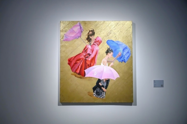 艺术家喻红的作品《风雨》与艺术家刘彦瑢的《瀑布NO.2》相互呼应,前者在创作中关注了人性的细腻,后者则是以潇洒的笔触展现艺术家眼中的风光。