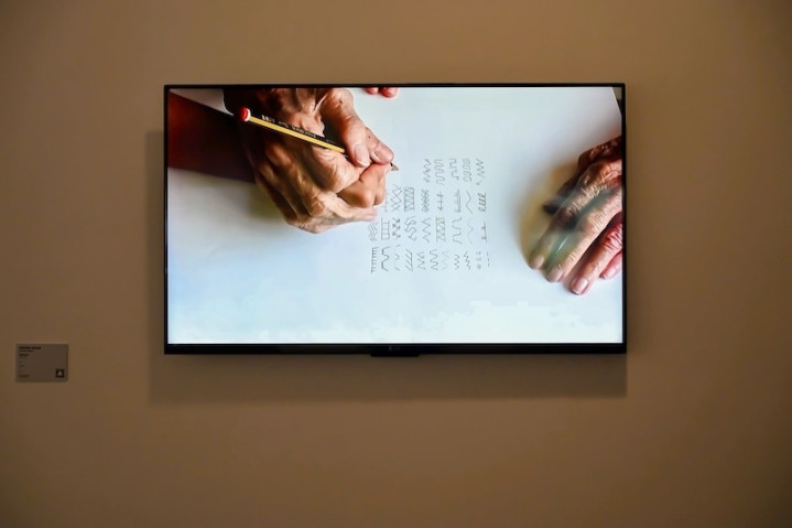 展览现场,中国艺术家尹秀珍的装置艺术《一句话No.097》