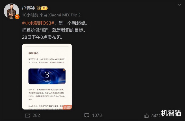在澎湃OS 2不断夯实流畅,稳定这些基本功后,澎湃OS 3终于重新开始大力拓展新功能,新体验,发挥出澎湃OS该有的体验。所以卢总将小米澎湃OS 3称为“新起点”,实际上是非常贴切。