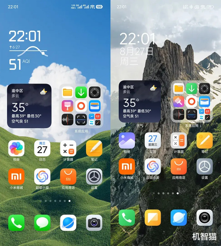 不过,小米在桌面留了一个很舒服的小细节,就是布局。